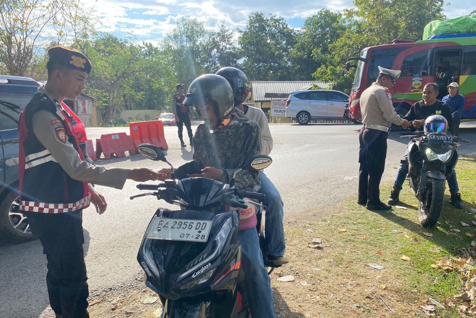Hari pertama kegiatan tersebut digelar di Pos Lantas Desa panda Kecamatan Palibelo Kabupaten Bima Anggota Satgas Preventif Sat Samapta Polres Bima Polda NTB yang tersprin Ops Patuh Rinjani 2025 memberikan himbauan kepada para pengguna jalan.
