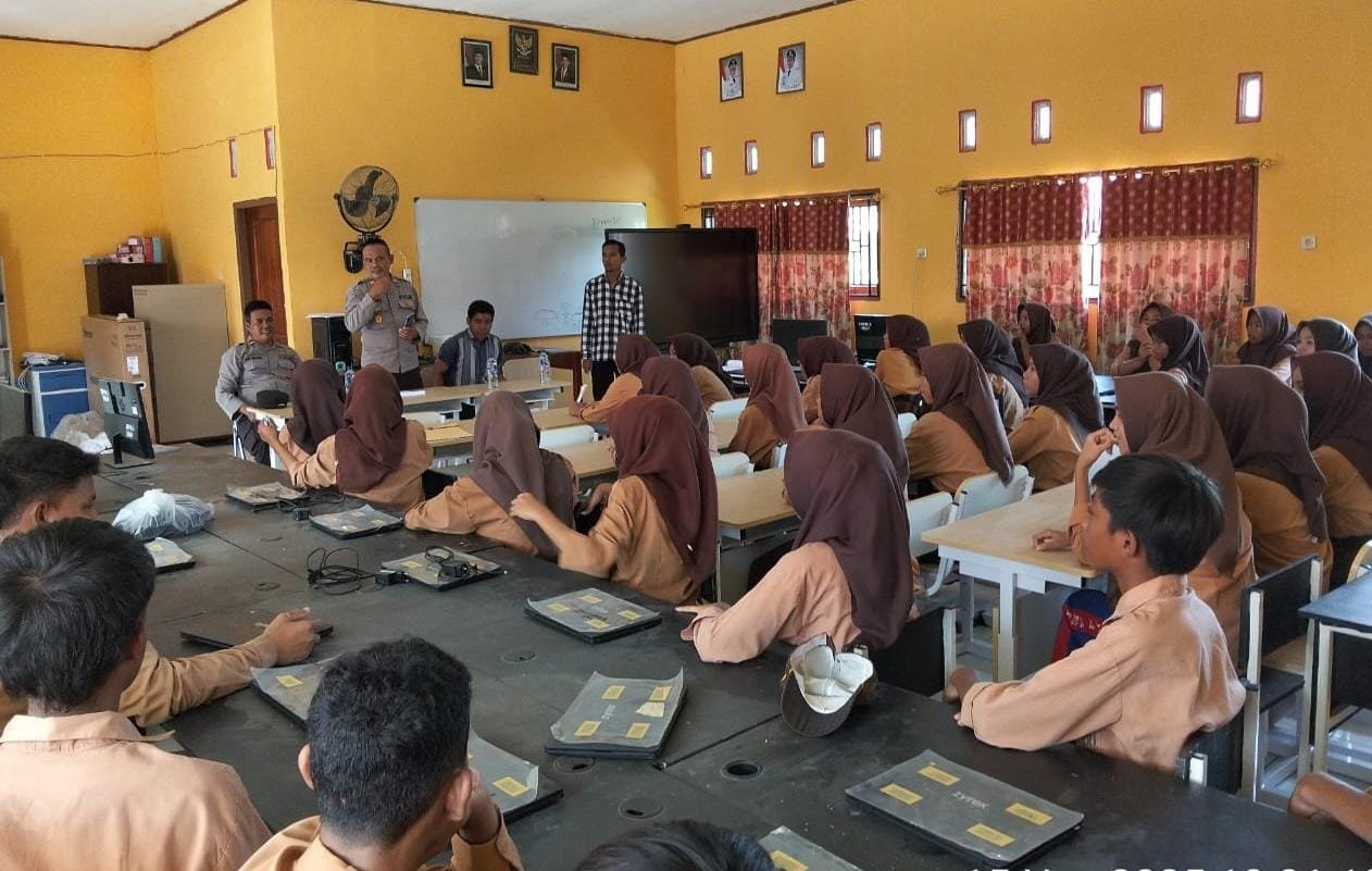 Kapolsek Belo Polres Bima Polda NTB Iptu Johansyah didampingi oleh anggotanya laksanakan kegiatan sosialisasi Penerimaan Peserta Didik Baru Tahun Ajaran 2026/2027 untuk SMA Kemala Taruna Bhayangkara di SMP Negeri 03 Belo pada Sabtu (15/11/2025). Pagi.